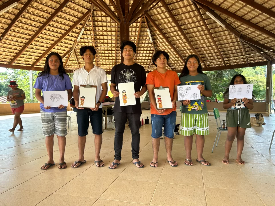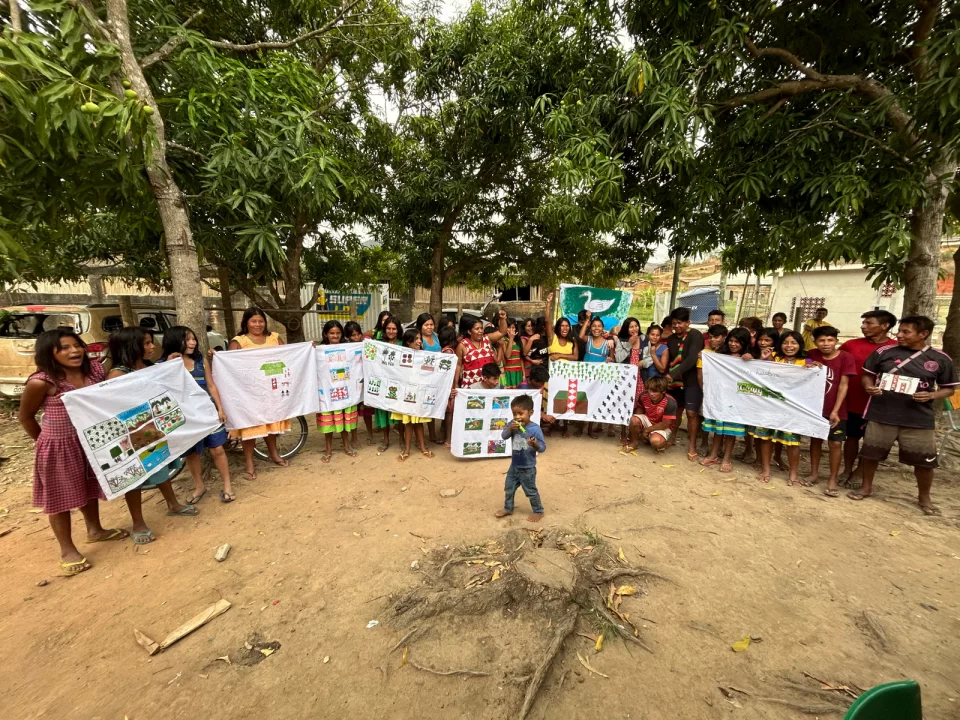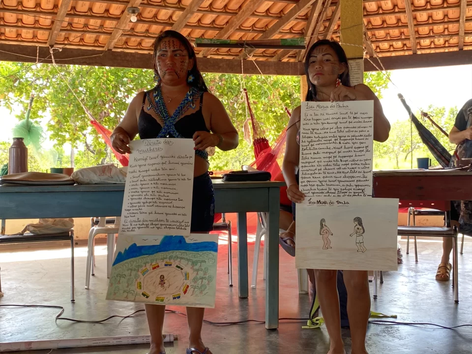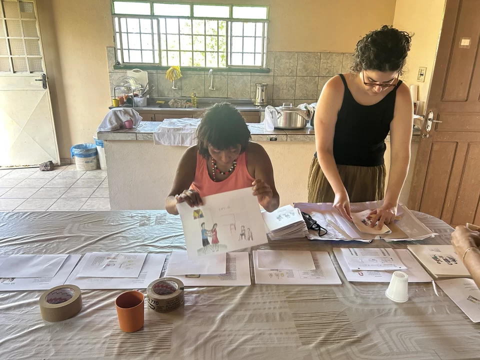 Atividade do projeto de Formação em Direitos Humanos para mulheres e jovens lideranças Yanomami, a 2a oficina de formação para mulheres Yanomami e Ye’kwana foi composta por uma semana intensa de conversas, convívios, trocas e aprendizados. Durante o encontro, produzimos uma publicação registrando o que os grupos de mulheres escreveram e desenharam sobre o tema dos direitos humanos, para que pudessem levar consigo de volta para as aldeias e para as associações o pensamento elaborado coletivamente.