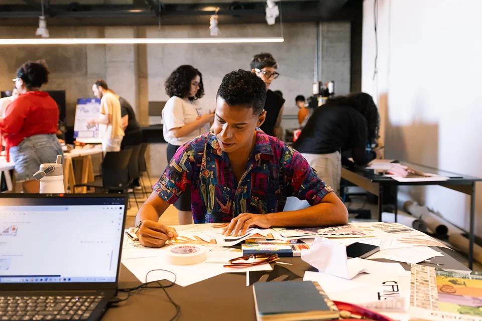 Em setembro de 2025, participamos do Festival KUYA Design Sulamericano, promovido pelo Centro de Design do Ceará, onde propusemos a oficina Autopublicação: brincadeiras editoriais. Ao longo da oficina, os participantes percorreram todas as etapas de produção de uma publicação independente – da escolha de conteúdos à experimentação de técnicas gráficas, passando pela edição, montagem e impressão. O resultado foi um zine coletivo, criado em diálogo com a memória e a imaginação da região no entorno do Centro de Design, que buscou explorar a disciplina do design como prática de aliança entre mundos.