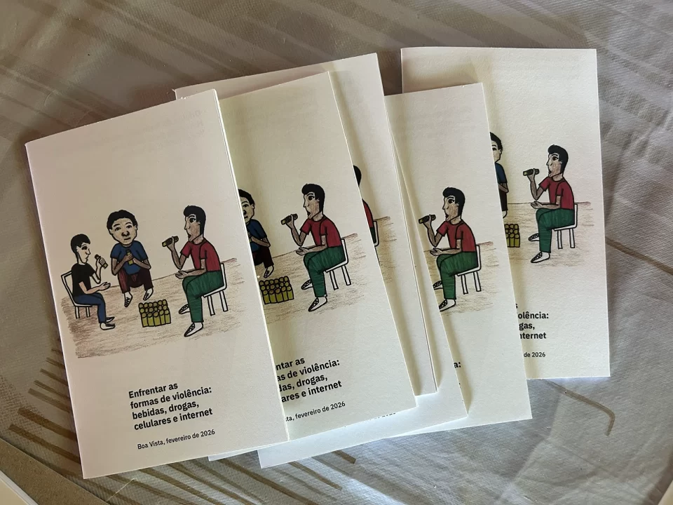 Desde 2024, passamos a integrar o grupo de pesquisa do projeto de Formação em Direitos Humanos para mulheres e jovens lideranças yanomami, para pensar e propor caminhos e desdobramentos gráficos para os encontros. No final de novembro, participamos da oficina de formação para mulheres Yanomami e Ye’kwana, uma semana intensa de conversas, convívios, trocas e aprendizados. Durante o encontro, produzimos uma publicação registrando o que os grupos de mulheres escreveram e desenharam sobre o tema dos direitos humanos, para que pudessem levar consigo de volta para as aldeias e para as associações o pensamento elaborado coletivamente.