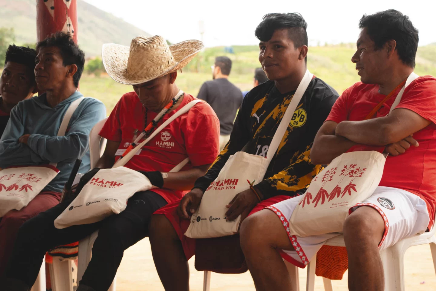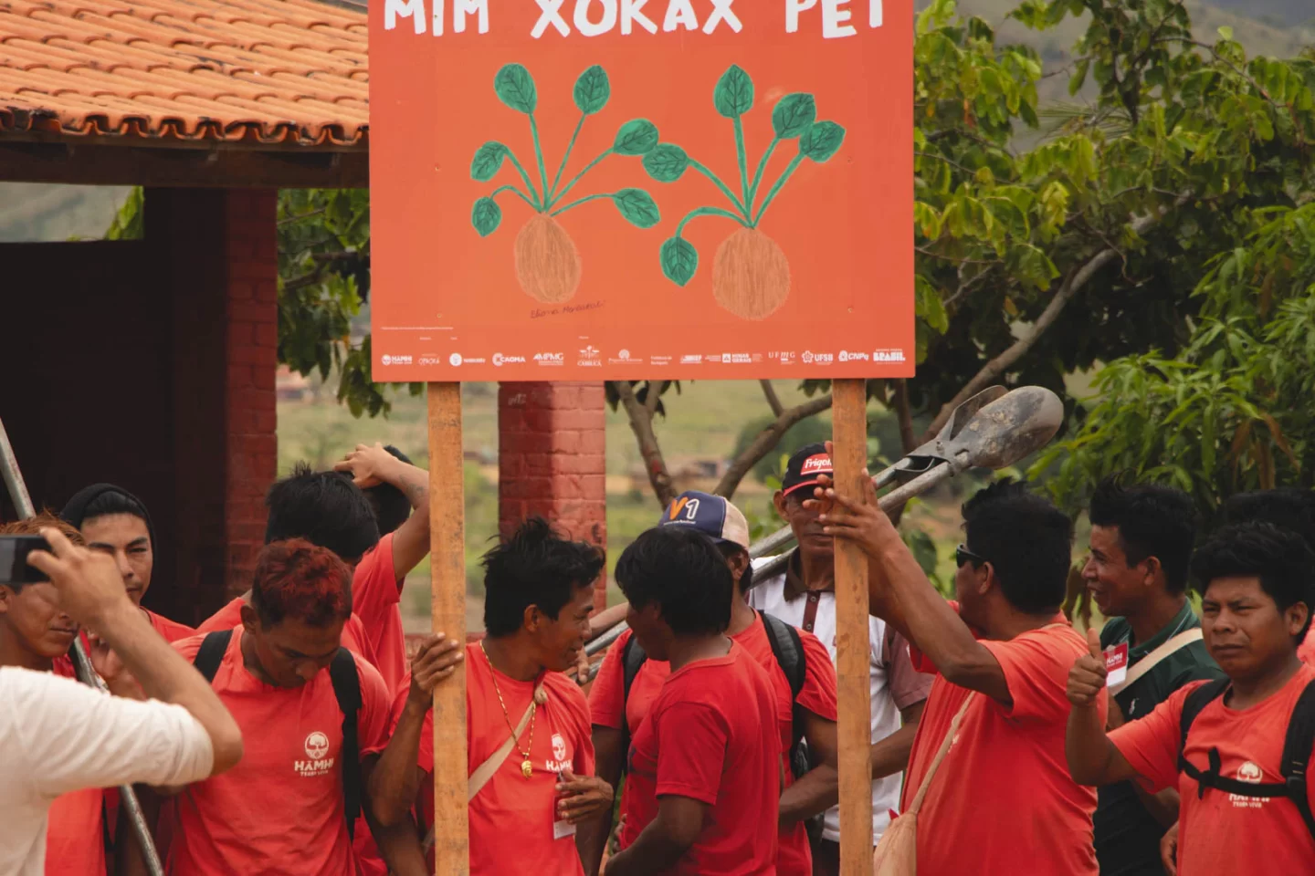 O projeto Hãmhi Terra Viva tem como objetivo a formação de Agentes Agroflorestais Tikmũ’ũn_Maxakali, responsáveis pela implementação e manejo de quintais agroflorestais e a recomposição florestal, aliando conhecimentos tradicionais aos princípios da agroecologia na recuperação ambiental de suas terras e reconquista da soberania alimentar. Baseada em uma escuta cuidadosa e na confluência com a rica produção visual dos Maxakali, a identidade visual do projeto se desdobra em várias ações e materiais de apoio, como bolsas, camisas, peças de sinalização, garrafas, cartazes, publicações, site, entre outras.