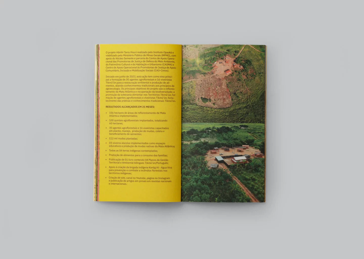 Ocorrida no Ministério Público de Minas Gerais, a exposição Hãmhitupmã: alegrar a terra teve como objetivo mostrar os resultados dos dois primeiros anos do projeto Hãmhi Terra Viva, onde jovens e adultos do povo Tikmũ’ũn_Maxakali se formaram como agentes agroflorestais e viveiristas para restaurar seus territórios, convertidos em pasto após décadas de colonização por fazendeiros criadores de gado. A exposição se desdobra em bandeiras de tecido expostas em suportes-árvores projetadas pelo arquiteto Augustin de Tugny, que mostram índices do projeto, imagens dos territórios recuperados e desenhos produzidos pelos Maxakali.