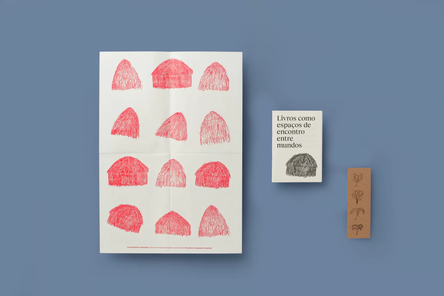 Produzida para a edição de 2023 da Feira Tijuana de publicações independentes, a zine Cosmopolíticas editoriais, produzida de forma manual, compila as reflexões do texto homônimo, publicado por nós na revista Recorte em 2023. No ensaio, refletimos sobre a criação de livros-cestos em conjunto com lideranças de povos originários e convidamos os leitores a também imaginarem as publicações como espaços de encontro com outros mundos, especialmente aqueles que excedem ou recusam o modo de vida moderno. A zine é acompanhada de um marcador de página e de um poster em risografia, com desenhos do artista Marquinhos Maxakali, produzidos especialmente para o projeto.